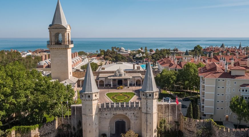 Хотел WOW Topkapi Palace е на 20 километра от летище Анталия. Разположен е на плаж Лара в курорта Кунду.