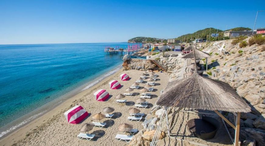 Собствен, пясъчно - чакълест. Чадъри, шезлонги и матраци на плажа и при басейна - безплатни. Плажни кърпи – срещу депозит.