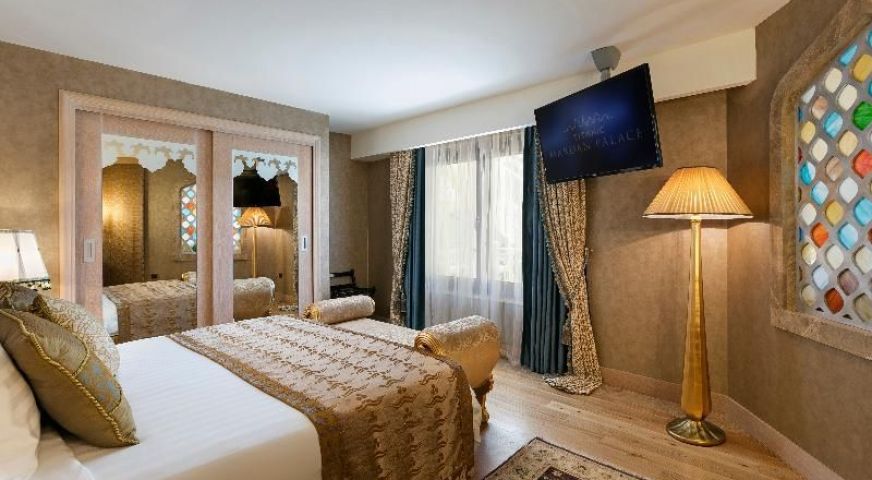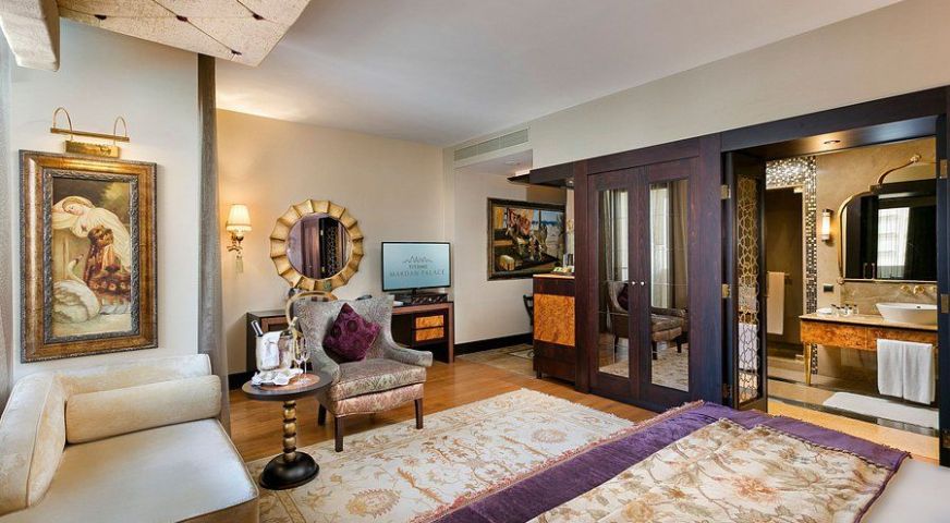 баня с вана или душ, балкон или тераса, мини-бар (безалкохолни и алкохолни напитки - зарежда се всеки ден, безплатно), Интернет Wi-Fi (безплатно), плодове (в деня на настаняване), централен климатик, телевизор, телефон, сейф (безплатно), под - ламинат и килим, сешоар, халат, чехли, почистване на стаите - всеки ден, смяна на спално бельо - всеки ден, room service (24 часа, платено)