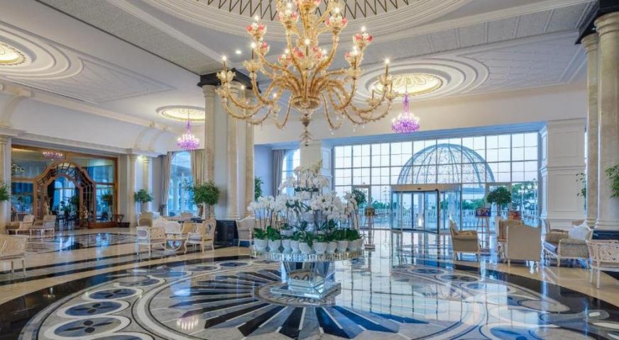 Собствен пясъчен плаж и бар на плажа, 3 открити басейна, закрит басейн, 5 водни пързалки. На плажа и при басейна чадъри, шезлонги, матраци и плажни кърпи се предоставят безплатно.
