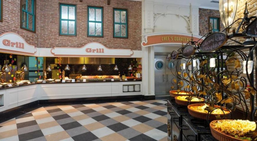 На разположение на гостите са основен ресторант и 2 а`ла карт ресторанта. Освежаващи напитки и закуски се предлагат в 6 бара и сладкарница.
