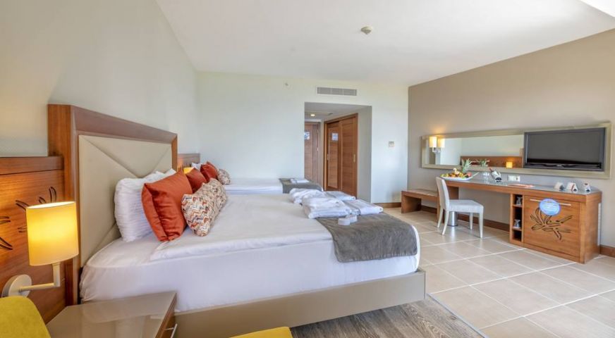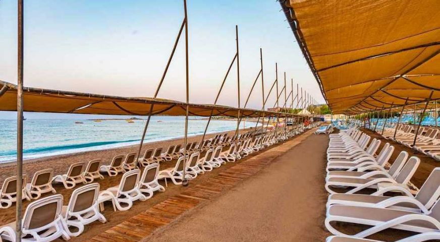 Хотелът разполага със собствен пясъчен плаж. Безплатен бар на плажа. Има също открит басейн, закрит басейн, 3 водни пързалки. При басейна и на плажа чадъри, шезлонги, матраци, плажни кърпи се предоставят безплатно.