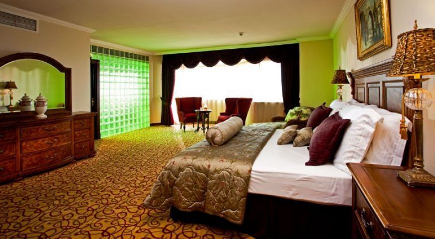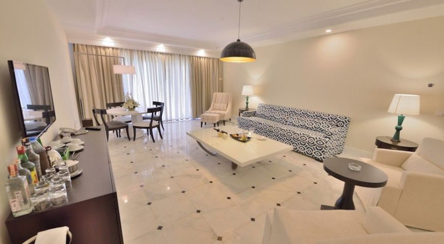 вана, сешоар, халат и чехли, централен климатик, телевизор, телефон, мини бар (безалкохолни напитки и бира се зареждат всеки ден, безплатно), сейф (безплатно), под – килим (Main Building), теракот (Villas), балкон, почистване на стаята – ежедневно, смяна на спалното бельо – 3 пъти седмично, room service (24 часа, платено), интернет Wi Fi (първите 30 мин. безплатно)