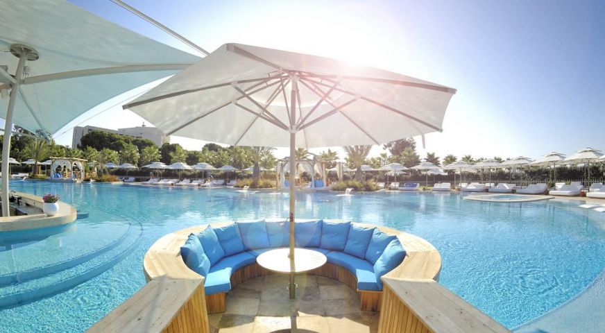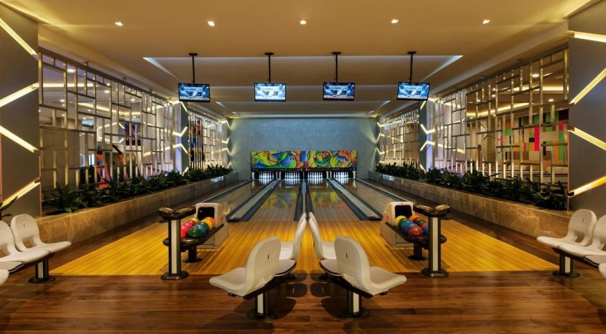 диетично меню, 9 бара, 5 басейна (1 басейн за сърфинг), 1 закрит басейн, 7 водни пързалки, 8 конферентни зали (за 280+2100 души), лекар на повикване, спа-център, пералня, фризьорски салон, кино, магазини,