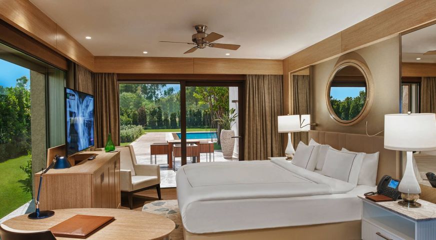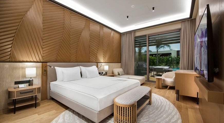 5 четиристайни Carya Golf Villa (хол с мека мебел, 3 спални с врата, 3 бани: 1 с джакузи и душ, 2 само с душ, голяма тераса (40 м2), макс. 6+1 чов., 250 м2, VIP-обслужване)