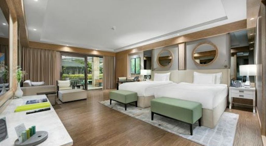 11 двустайни Golf Suites by pool (хол с мека мебел, спалня с врата, 2 бани: 1 с душ и джакузи, 1 само с душ, директен вход в басейна, макс. 4+1 чов., 100 м2)