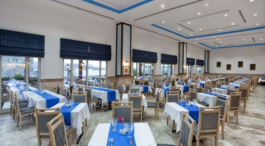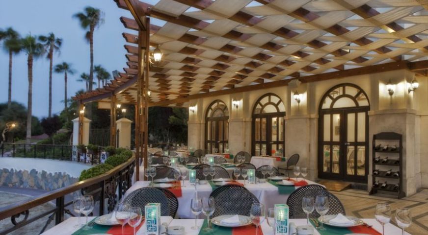 Хотелът разполага с а-ла-карте ресторанти: турски ресторант, италиански ресторант, Средиземно морски ресторант и барбекю ресторант (заплаща се допълнително, изисква предварителна резервация); Основен ресторант, който предлага закуска, обяд, вечеря и две късни хранения.