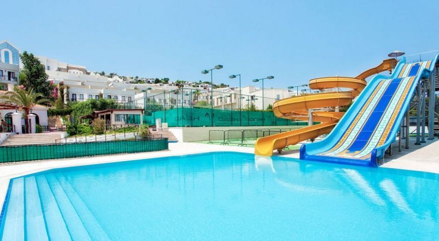 Хотелът разполага със собствен плаж, басейн тип лагуна, с хидромасажна зона, уелнес център, предлагащ лечебни и козметични процедури, както и традиционна турска баня. Хотелът предлага на своите гости уиндсърф, гмуркане, гребане с кану, както и разполага с фитнес център.
