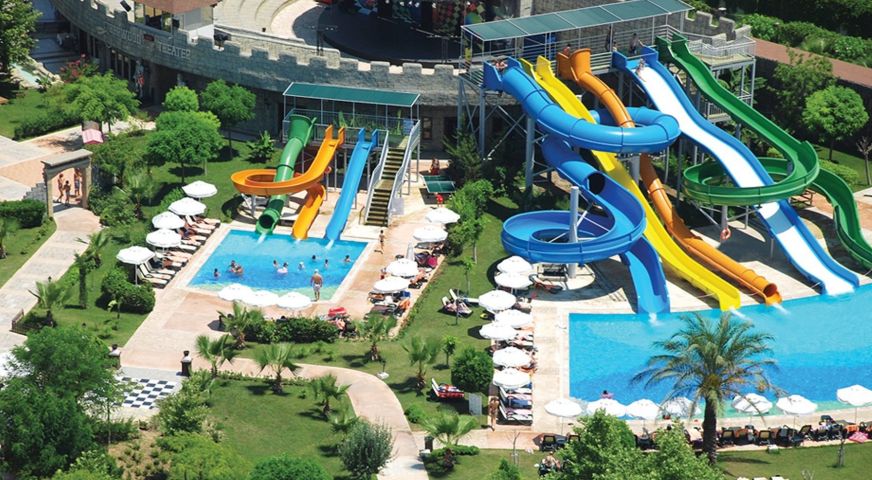 3 открити басейна (2000, 200 и 80 кв. м), 2 закрити басейна (150 и 10 кв. м), водни пързалки, анимация, амфитеатър, кино, музика на живо, дискотека (безплатно), обмен на валута, магазини, Интернет кафе (срещу заплащане), конферентна зала, паркинг, Турска баня, сауна, фитнес център, тенис, дартс, мини-футбол, плажен волейбол, баскетбол, тенис на маса, кану, стрелба с лък, безжичен интернет във фоайето на хотела.