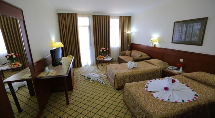Хотелът се състои от основно 4-етажно здание Panorama, 3-етажен корпус Family House, 4-етажен корпус Fortuna и десет 2-етажни вили Club House (всички са с изглед към градината). Panorama: 122 standard room (макс. 3+1 чов., 30 м2); 7 двустайни suite room (хол, спалня с врата (french bed), 2 балкона, електрически чайник, макс. 3+1 чов., 55 м2). Fortuna: 111 standard room (макс. 2+1 чов., 26 м2); 27 duplex room на две нива (на първо ниво: мека мебел, баня с вана, балкон, на второ ниво: спалня без врата c french bed, баня с душ, макс. 3+1 чов., 35 м2). Family House: 10 двустайни family room (2 спални с врата, 2 TВ, балкон, макс. 5 чов., 44 м2). Club House: 240 club room (макс. 3+1 чов., 26 м2).
