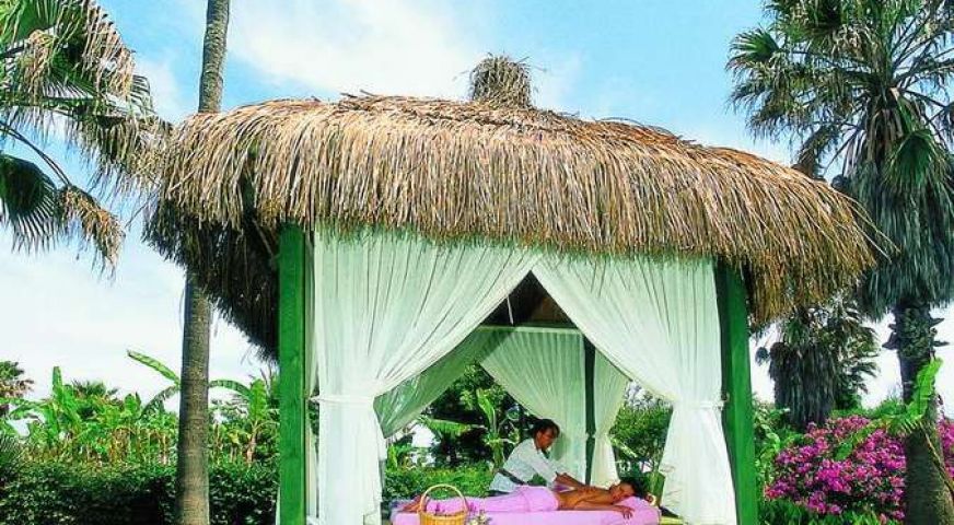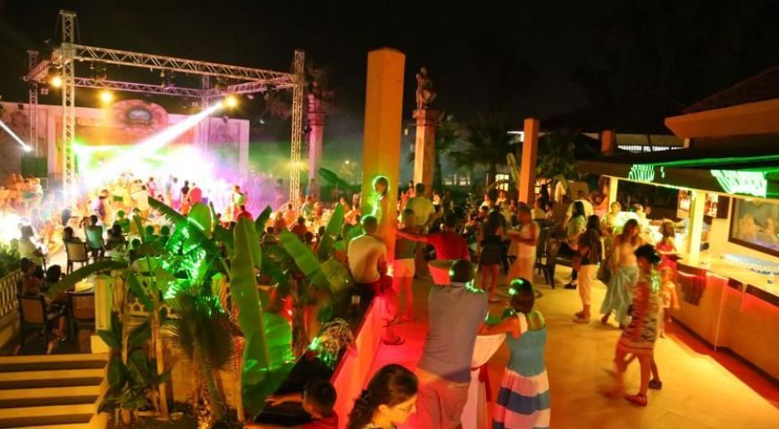 основен ресторант, диетично меню, 4 ресторанта a la carte (турски, италиански, рибен, далекоизточен, с предварителна резервация, посещение 1 път седмично – безплатно), 5 бара, 2 открити басейна, закрит басейн, 4 водни пързалки, лекарски кабинет, SPA център, фризьорски салон, магазини, пералня, химическо чистене, 12 конферентни зали (за 20–1000 чов.), 4 футболни игрища (105х68) За децата: детски бюфет, 2 детски басейна, детска водна пързалка, детска площадка, мини клуб (4–12 год.)