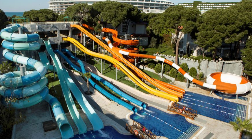 аквапарк (11 водни пързалка за възрастни и 12 за деца)
