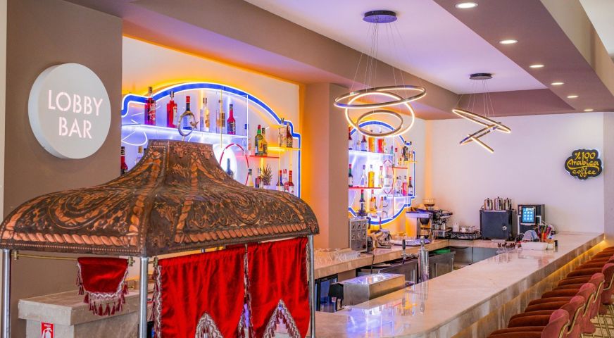 Основен ресторант, бар, 2 открити басейна (единият е с пързалки), закрит басейн, фитнес, СПА център, лека анимация, жива музика (провежда се в няколко пъти в седмицата),