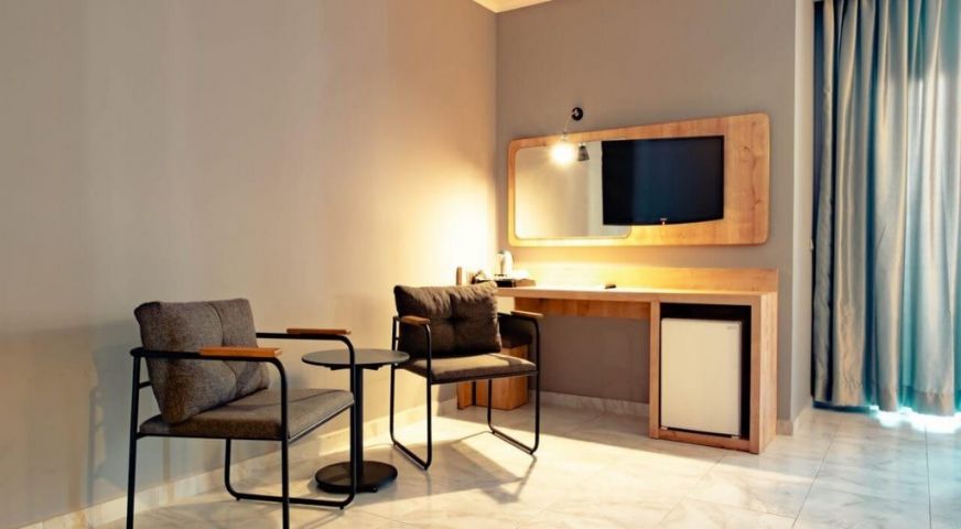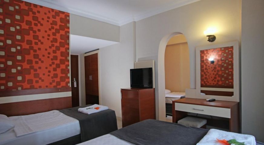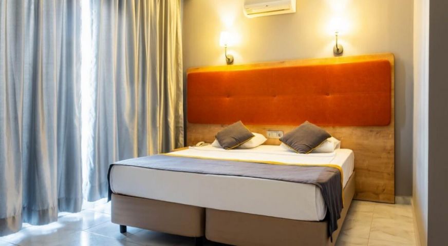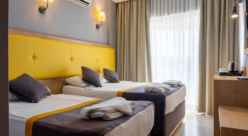 В стаите: Комфортни и обзаведени в неутрални, светли цветове, всички стаи са климатизирани и с балкон или тераса. Освен това разполагат със сейф, сателитна телвизия, минибар и безплатно WiFi. Стаите са с гледка градина или странична гледка към морето.