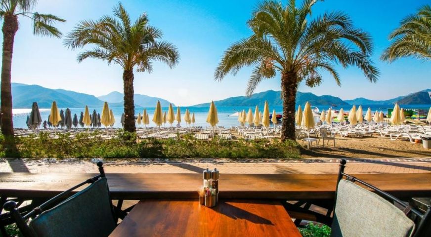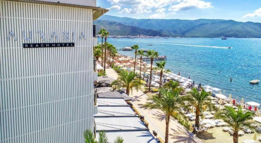 Този хотел разполага със собствен плаж на Средиземно море, открит басейн и панорамна гледка към планината Мармарис. Някои от стаите в хотел Aurasia Beach са с изглед към морето. Всички стаи разполагат със самостоятелен балкон, климатик и самостоятелна баня. В целия хотел има безплатен Wi-Fi достъп. Всяка сутрин в хотел Aurasia Beach се сервира закуска на шведска маса. Гостите могат да се насладят на обяд и вечеря в ресторант и бар Firuze, а коктейли се предлагат в плажния бар. На плажа се предлагат безплатни шезлонги и чадъри. Центърът на Мармарис е на 2 километра от хотел Aurasia Beach, а летище Даламан е на 100 километра.