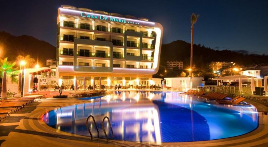Този хотел се намира само на няколко крачки от брега на морето и разполага с открит басейн, частен плаж и безплатен WiFi. Предлага климатизирани стаи със сателитна телевизия и балкон. Всички стаи в Casa De Maris Spa & Resort Hotel Adult Only 16 Plus са с модерен интериор в пастелни цветове. Всички те разполагат с минибар и самостоятелна баня. Хотелът разполага с много а-ла-карт и бюфет ресторанти, които сервират традиционна и интернационална кухня и морски дарове. В снек-бар Caria край басейна се предлагат различни леки закуски и напитки. Има и сладкарница, където можете да намерите различни видове сладкиши. СПА центърът включва турска баня, сауна и масажни услуги. На разположение на гостите има фитнес зала. Casa De Maris Spa & Resort Hotel Adult се намира на по-малко от 3 километра от центъра на Мармарис. Само 16 Plus е на 100 километра от летище Даламан.