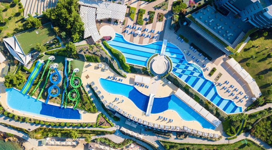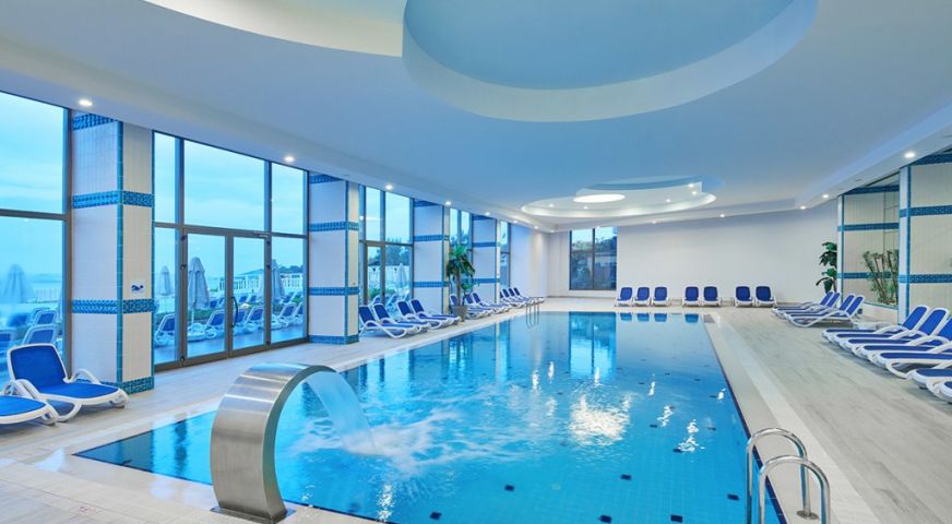 Два външни басейна, вътрешен басейн, аква парк. На плажа има общо 16 кабани, които могат да се наемат срещу допълнително заплащане, с включен сервиз.