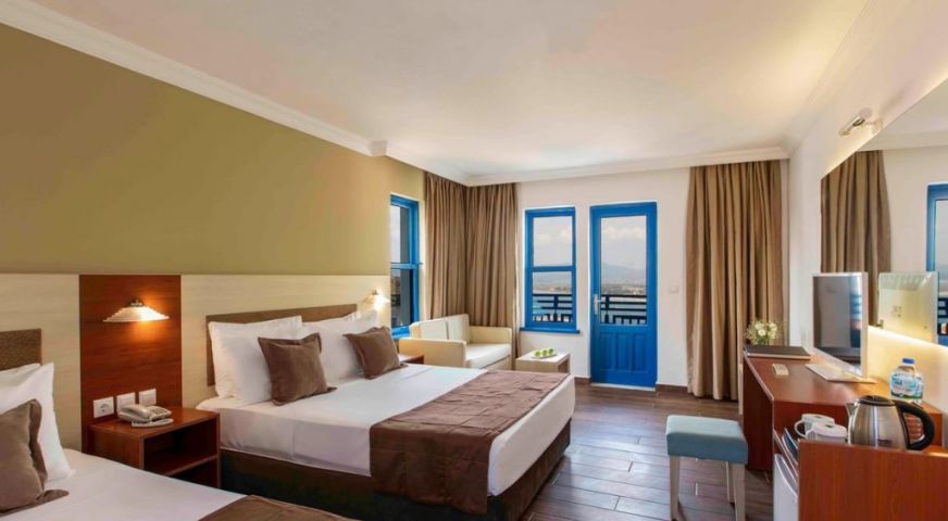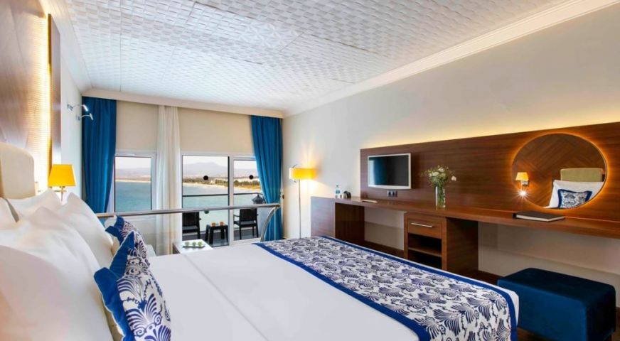 • Superior Double Room Sea View – 25м2, Намират се в основната сграда с изглед към морето и разполагат с двойно или двойно + единично легло. Всяка супериорна стая разполага със сателитна телевизия, централно контролиран климатик, Wi-Fi, сервиз за кафе, сейф, безплатен минибар, сешоар, баня с душ и тоалетни принадлежности, балкон.