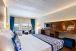 • Bungalow Two Bedroom Garden View – 30м2, Фамилни стаи разположени в бунгалата. Всички са двустайни с междинна врата, едната с двойно легло, а другата с две единични легла или двуетажно легло. Разполагат със сателитна телевизия, централен климатик, Wi-Fi, сервиз за кафе, сейф (или безплатно), минибар, сешоар, баня с душ и балкон или тераса.