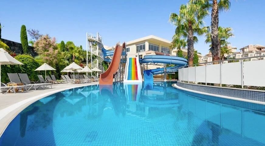 За децата: 3 детски басейна, водни пързалки, детска площадка, мини клуб, мини диско.