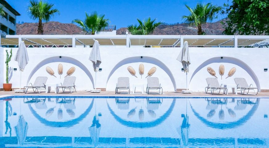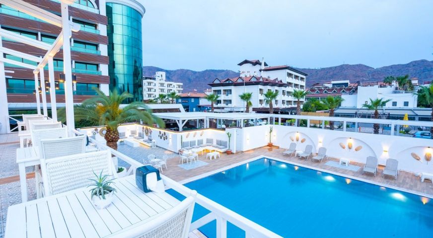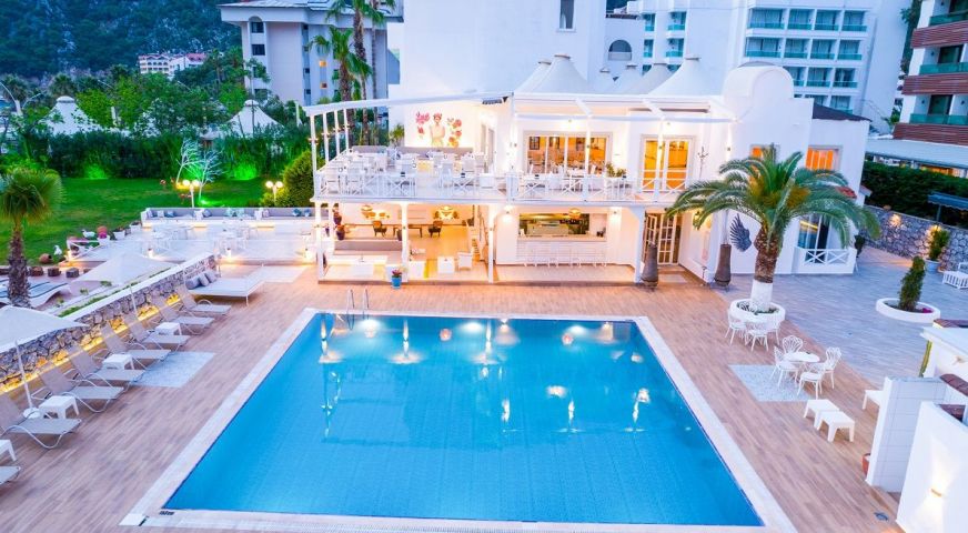 Малък хотел за тиха и уединена почивка. Намира се на 10 км от центъра на Мармарис, в района на Ичмелер, на 30 м от плажа.