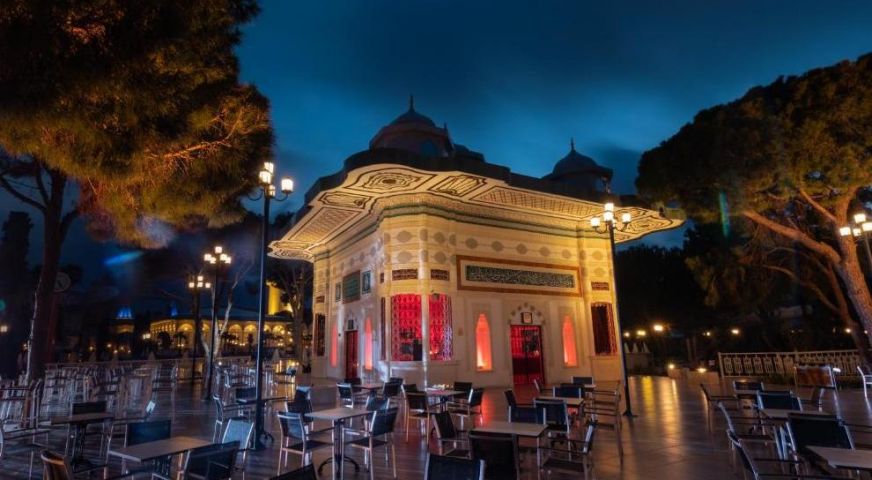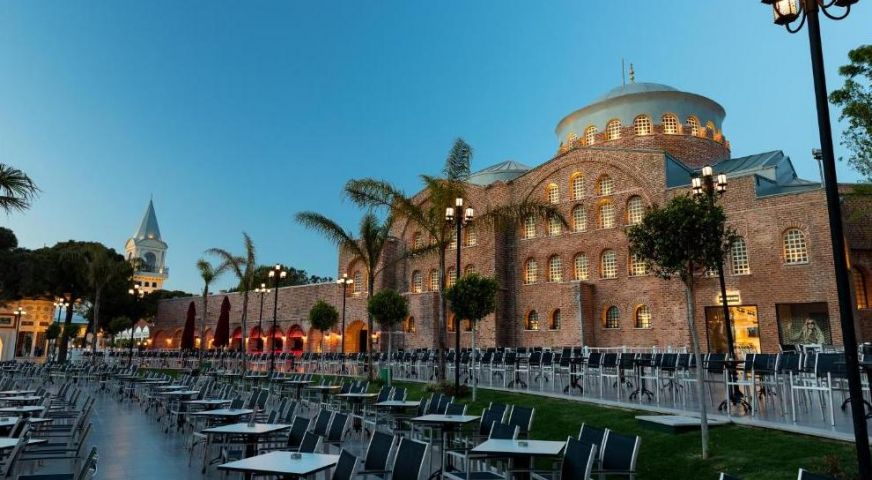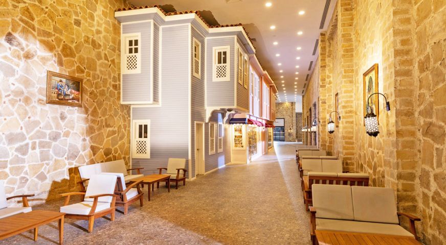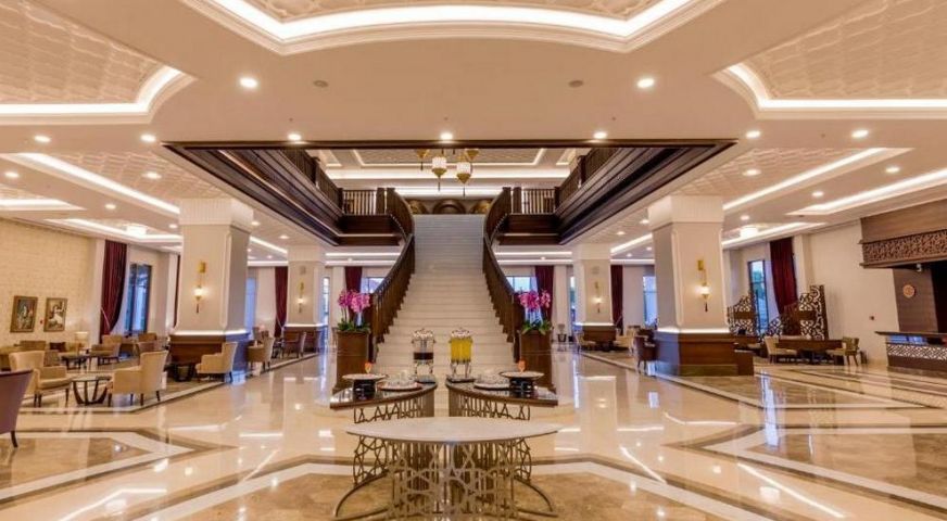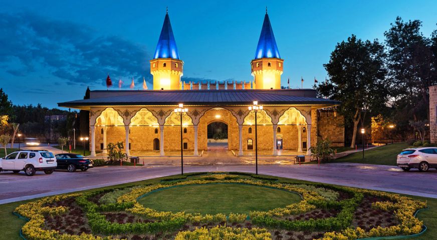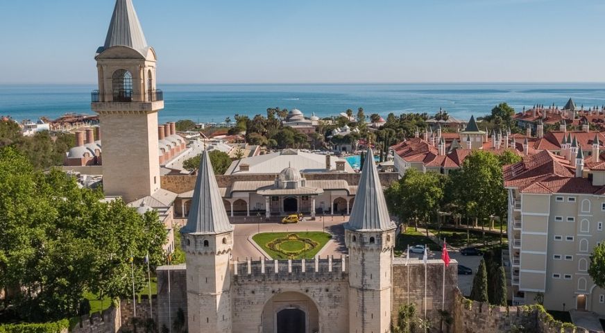Дизайнът на хотела е в стила на Великата Османска империя и е създаден по модела на двореца Топкапъ в Истанбул. Хотелът се намира на 17 км от летището, на 20 км от центъра на Анталия, на един от най-красивите плажове в Средиземно море - Кунду. Хотелът е реновиран през април 2023 г.