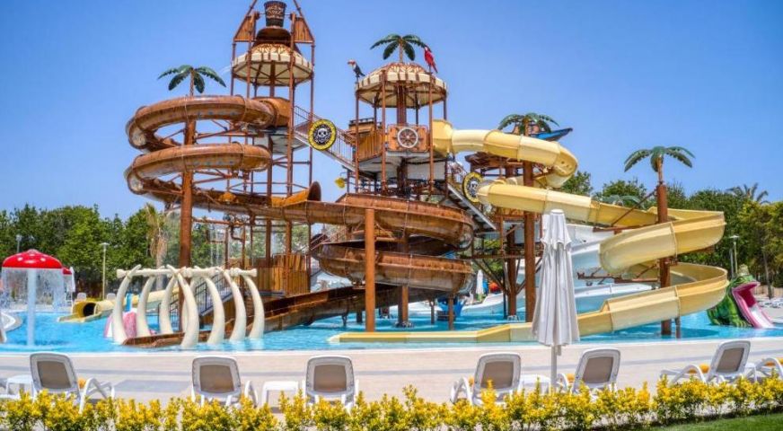 Собствен пясъчно–чакълест плаж. На разположение на гостите са 4 открити басейна (2850, 380, 560 и 50 кв. м), 2 закрити басейна (единият отопляем през зимния сезон). Басейн с 5 водни пързалки за възрастни (отопляем през зимния сезон). Интерактивен аквапарк за деца със 7 пързалки за деца и 3 пързалки за бебета. Кърпи, чадъри, шезлонги и матраци се ползват безплатно.
