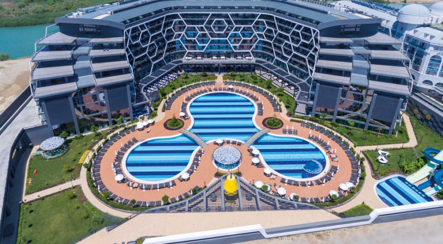 Собствен пясъчно-чакълест плаж на 250 м от хотела. Между хотела и плажа има автомобилен път, осигурен е безплатен превоз. На разположение на гостите са открит басейн с прясна вода 1258 кв.м (отопляем през април и май), 1 закрит басейн с прясна вода 140 кв.м (отопляем през студения сезон: април, май, октомври). 3 водни пързалки.