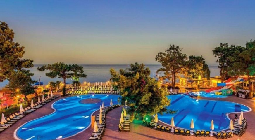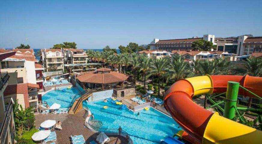 Разположен на 54 км от летището на Анталия, в Кемер, на брега на морето. Построен е през 2004 година, общата площ на хотела е 29 000 кв.м., Последно е реновиран през 2022 година.