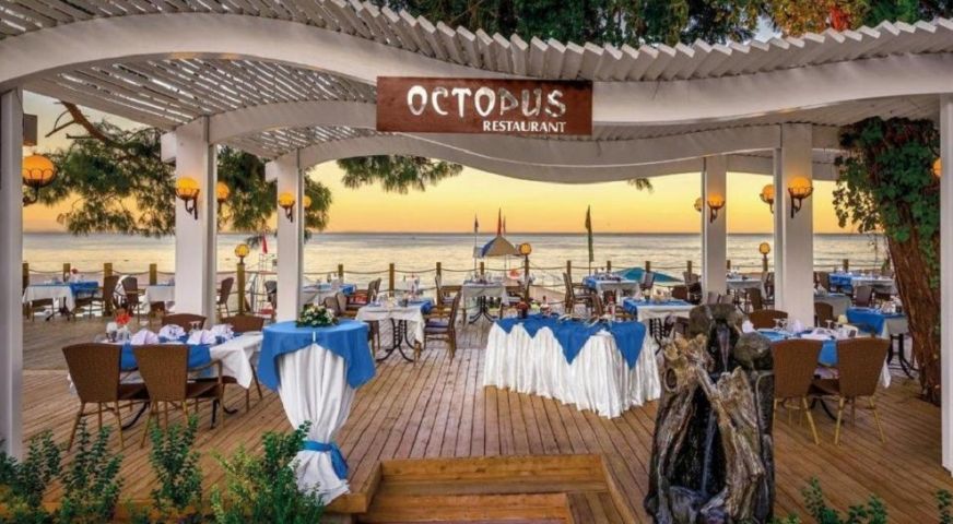 Хотелът разполага с основен ресторант, 3 а`ла карт ресторанта: турски, италиански, китайски, рибен. Освежаващи напитки и закуски се предлагат 5 бара: лоби бар, бар на плажа, бар при басейна, Garden House и сладкарница.