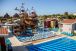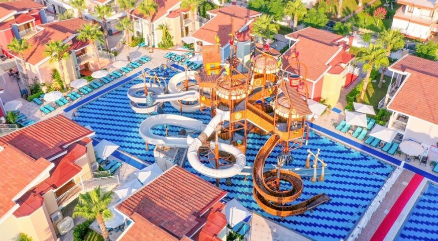 Собствен пясъчно-чакълест плаж на 450 метра от хотела с душове, кабини за преобличане, спасител, бар на плажа. Има осигурен безплатен шатъл до плажа. Открит басейн с 2 пързалки за деца и 3 за възрастни. Шезлонги, чадъри и плажни кърпи на плажа и при басейна се ползват безплатно.