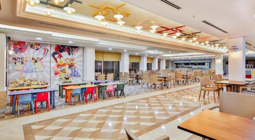 На разположение на гостите са основен ресторант и 2 а`ла карт ресторанта: турски и рибен (платен). Има също ресторант на плажа, павилион за гьозлеме и сладкарница. Разнообразни напитки се предлагат в 4 бара.