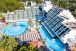 Хотелът има собствен пясъчен плаж с камъчета, дълъг 60 м. За удобство на гостите си има и 2 открити басейна, 5 водни пързалки. Легла, чадъри, матраци, плажни кърпи на плажа и при басейна се осигуряват безплатно.