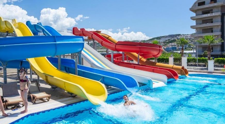 Хотелът има собствен пясъчно-чакълест плаж. Има и 2 открити басейна с 5 пързалки, както и тераса за слънчеви бани. На плажа и при басейна чадъри, шезлонги, матраци се предоставят безплатно.