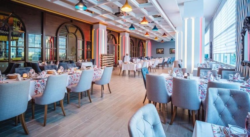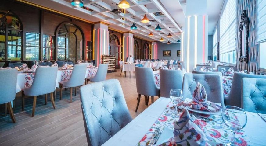 Има основен ресторант и един а`ла карт, в който се поднася османска и средиземноморска кухня. 5-те бара предлагат разнообразие от напитки.