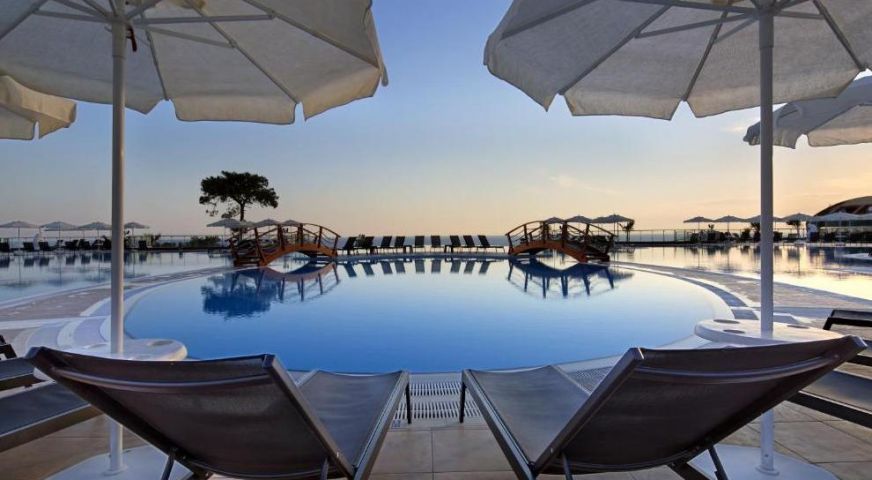 Хотелът разполага със собствен плаж, открит, закрит и инфинити басейни. Чадъри и шезлонги на плажа и басейна се предоставят безплатно. Има и тераса за слънчеви бани.