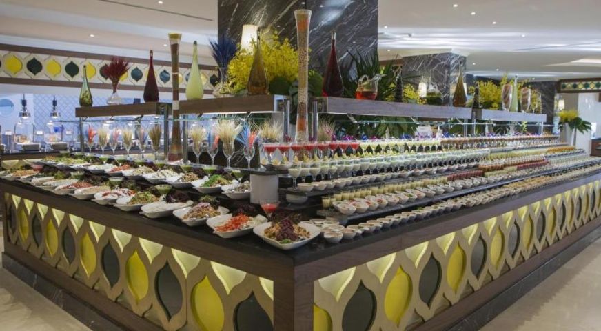Хотелът разполага с основен ресторант, 4 а`ла карт ресторантa (местен, суши, рибен, италиански), сладкарница, 6 бара. Ultra All Inclusive - закуска, обяд и вечеря на шведска маса, допълнителни хранения, местни напитки без лимит.