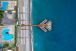 Душ, кабини за смяна, спасител, плажен бар, кей. Вход в морето – камъчета.