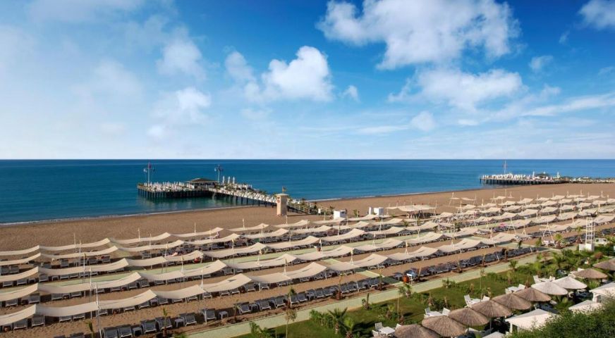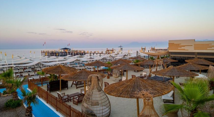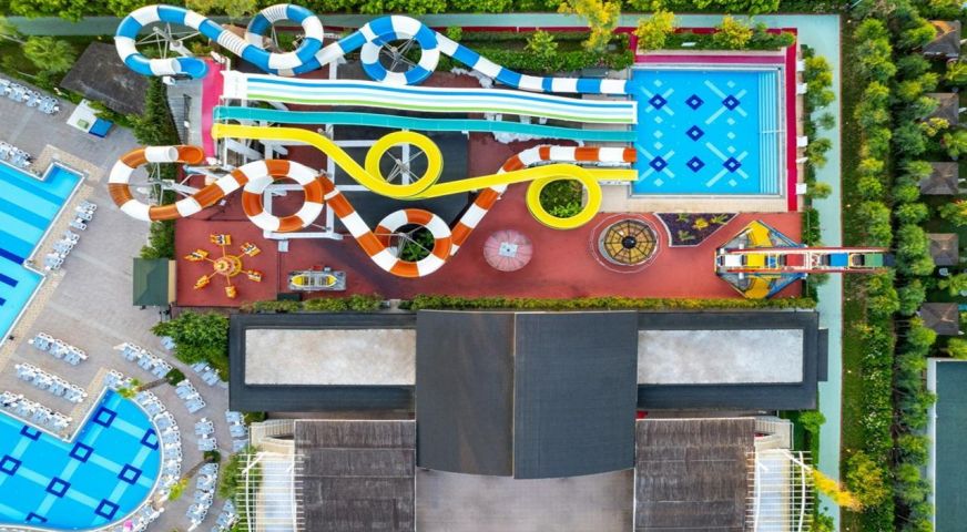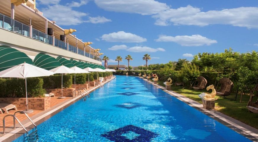 Намира се на 15 км. от летище Анталия, на 10 км. от центъра на Анталия, в района на Лара, на брега на морето. Посторен през 2012 г., с обща площ 54.000 м2., реновиран 2014 г.