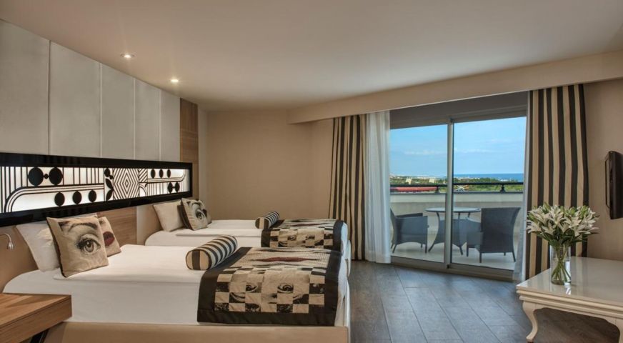 Хотелът разполага с общо 650 стаи, разположени в една 9-етажна сграда, от които 474 супериор стаи Superior room (с изглед суша, частично море – 35 м2). 38 фамилни стаи Family room (с изглед частично море, 2 спални - 56 м2); 43 Connection rooms (с изглед частично море, 2 спални, 2 бани, 70 м2); 64 Junior suite ( едностаен апартамент, с изглед частично море - 45 м2); 21 Lagoon room (с директен достъп до общ басейн - 36 м2). 9 Deluxe family room (с изглед частично море, 2 спални – 56 м2). Всички стаи са оборудвани с климатик, телевизор, телефон, баня с душ/вана, сешоар, минибар (безплатен), сет за кафе/чай, сейф (безплатен). Почистване на стаите и смяна на кърпите - всеки ден, смяна на спалното бельо – 2 пъти в седмицата.