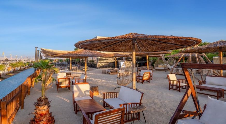Собствен, пясъчен. Чадъри, шезлонги и матраци на плажа и при басейна - безплатно. Плажни кърпи – безплатно.
