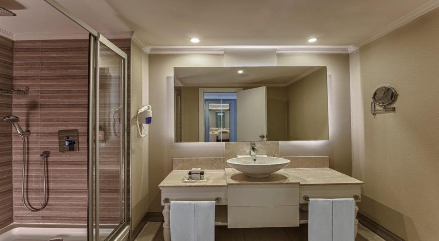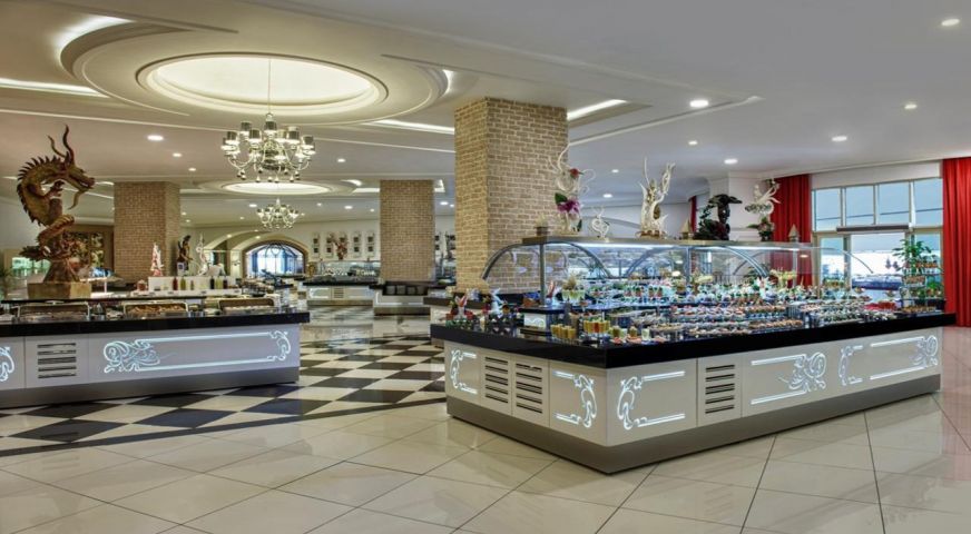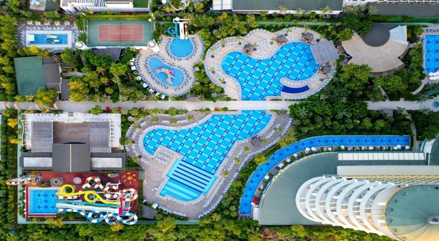 Основен ресторант, 8 а - ла - карт ресторанта (италиански, френски, гръцки, мексикански, далекоизточен, османски, рибен, ресторант месо и вино - с предварителна резервация, при минимум 7 нощувки - безплатно), 5 бара, 3 открити (оновен, релакс и с пързалки) и 1 закрит басейн, дискотека, аквапарк, лунапарк, СПА център, магазини, конферентна зала, Wi-Fi (безплатен).