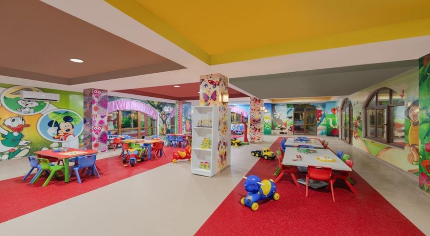 Детски открит и закрит басейн, водни пързалки, детска площадка, мини клуб (4-12г.), мини диско, детски приключенски парк, детегледачка (платено).