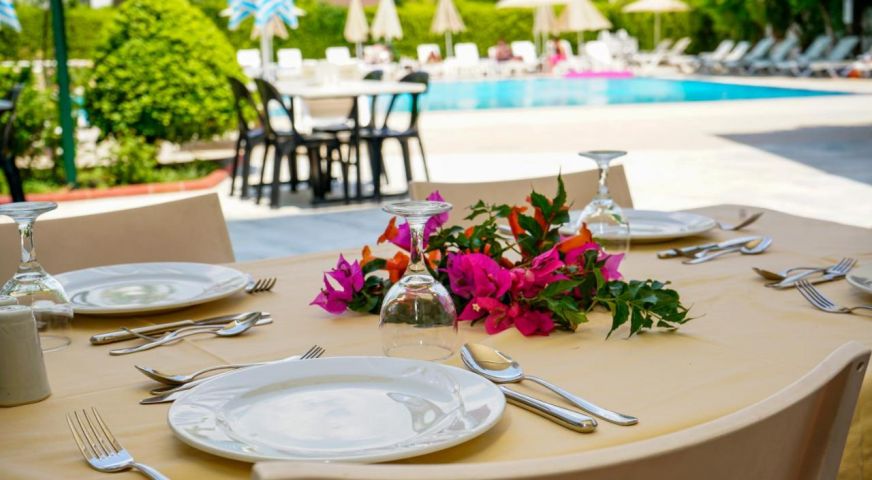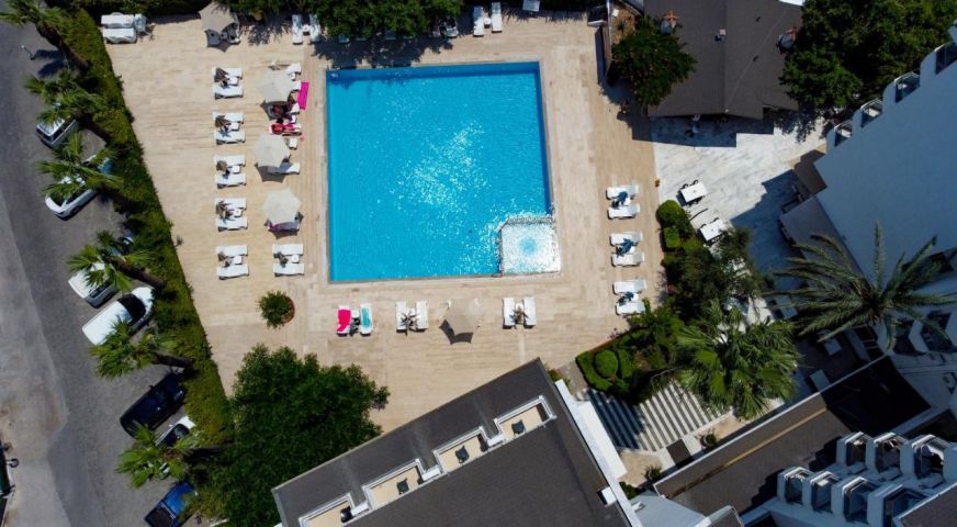 Хотелът разполага с 116 стандартни стаи, външен басейн, детски басейн, основен ресторант. Услуги предлагани в хотела без заплащане: външен и вътрешен басейн, паркинг, Турска вечер (1 седмично). Услуги предлагани в хотела срещу заплащане: доктор, фризьор, гладене, пералня, химическо чистене, сейф на рецепция, водни спортове, коли под наем, мини клуб, обмен на валута. ПЛАЖ: Градски плаж. Шезлонги и чадъри на плажа - платено, а при басейна- безплатно.