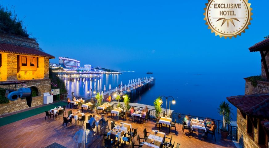 Основен ресторант, а - ла - карт ресторант (срещу заплащане), 6 бара, открит и закрит басейн, аквапарк с две пързалки, 2 конферентни зали, паркинг, Wi-Fi (спрямо концепцията на хотела).