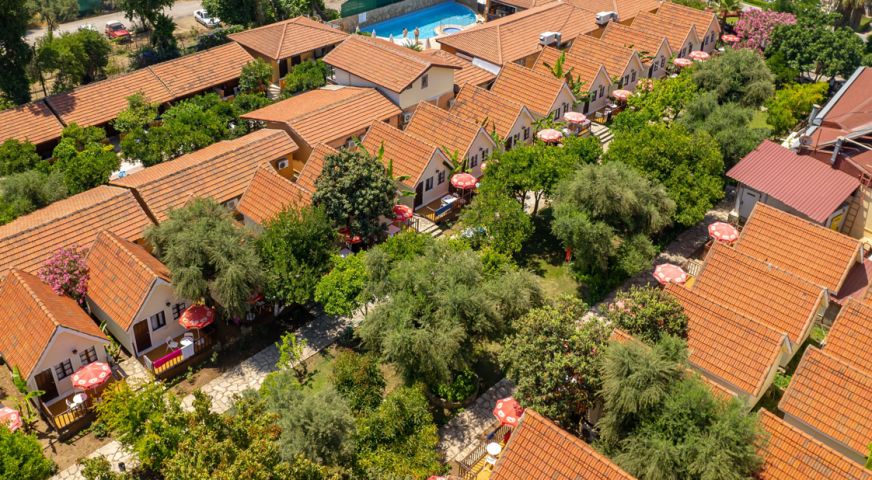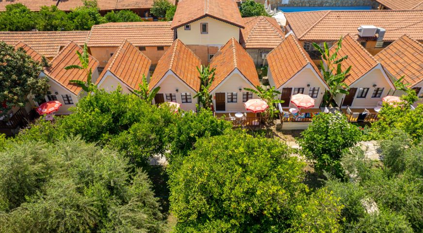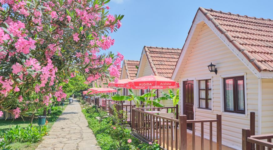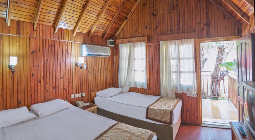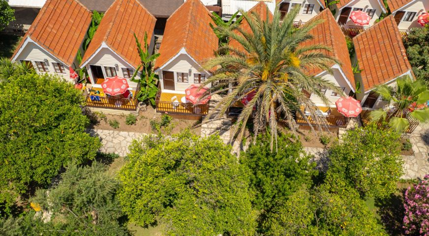 Разполага с 48 бунгала, всяко от които е снабдено с:климатик ( регулира се индивидуално), баня и тоалетна, сешоар, телефон (срещу заплащане), телевизор, мини бар (ежедневно се зарежда с вода), балкон или тераса.