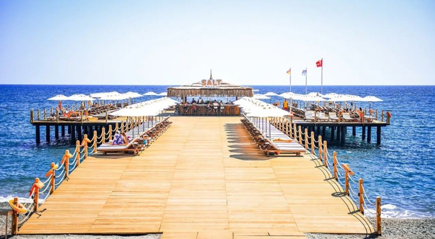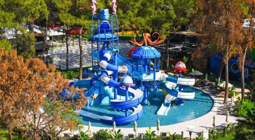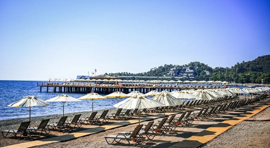 Разположение: Хотелът се намира на 5 км от центъра на Кемер, на 52 км от междунардоното летище в Анталия, на брега на морето. Открит е през 2024 г., разположен на територия с площ от 60 000 м2.