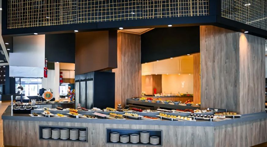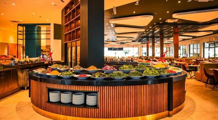 На територията на хотела: Един основен ресторант, два а ла карт ресторанта ( средиземноморкса и рибна кухня, стек – таксуват се допълнително), снек ресторант и бар, 7 бара, дискотека, СПА ценър, фитнес зала, 2 открити басейна, един от които с водни пързалки, вътрешен басейн, конферентна зала.