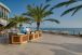 * Частен пясъчен плаж със шезлонги, чадъри и кърпи.