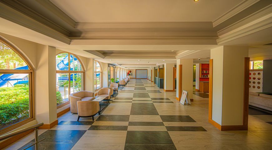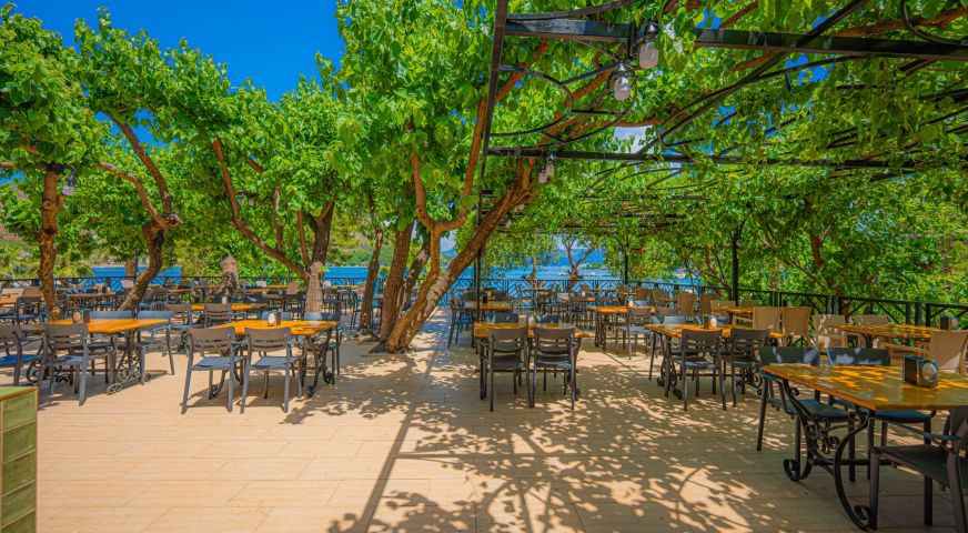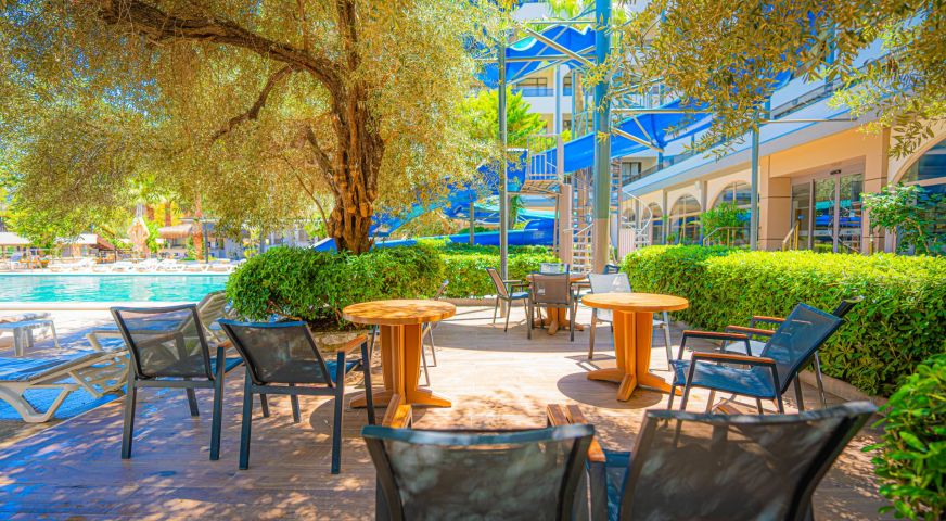 Основен ресторант, а - ла карт ресторант, снек бар, бар на плажа, открит басейн, 2 водни пързалки, Спа център.